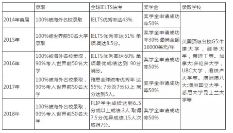 回顾办学的七年,华师国际班毕业生100%获得海外大学本科录取通知书,在A-Level全球统考中优秀率(A或A*等级)达90%,83%的毕业生凭借优秀的A-Level成绩、IELTS成绩进入世界排名前50的大学本科就读,雅思成绩优秀率(7.0分以上)达30%,同时,30%的同学获得奖学金,最高金额达80000加币。